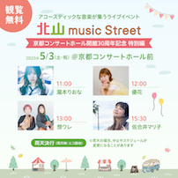 アコースティックな音楽が集うライブイベント「北山 music Street」も開催いたします。