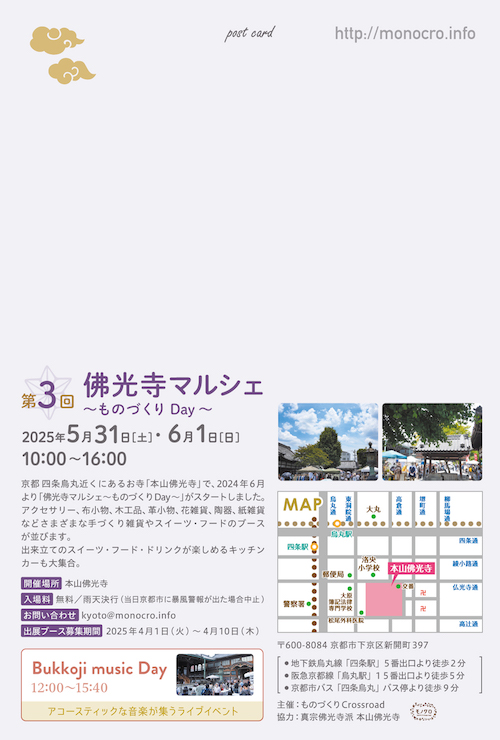 「佛光寺マルシェ~ものづくりDay~」「Bukkoji music Day」のイベントサイトはコチラ