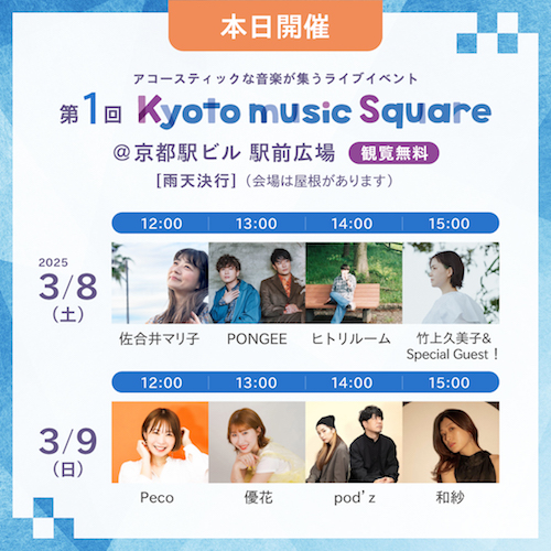 アコースティックな音楽が集うライブイベント「Kyoto music Square」も開催いたします。