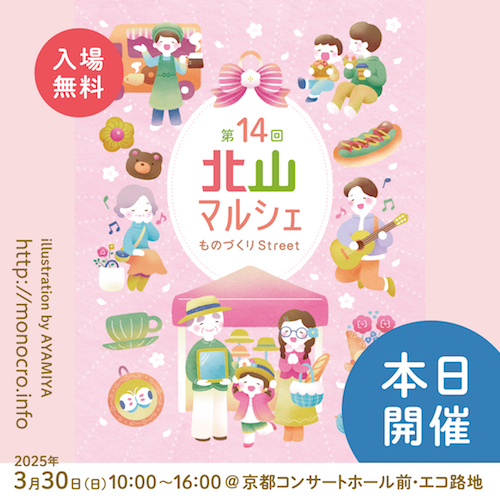 本日3月30日(日)、「第14回 北山マルシェ~ものづくりStreet~」 「第14回 北山 music Street」 を開催します