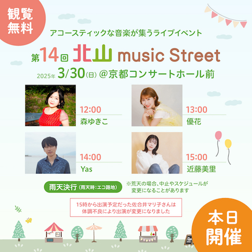 アコースティックな音楽が集うライブイベント「北山 music Street」も開催いたします。