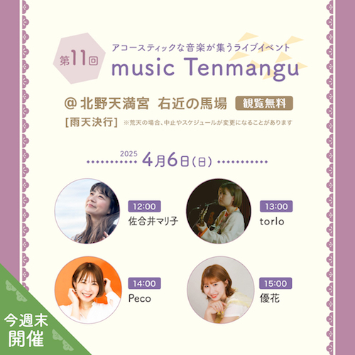 アコースティックな音楽が集うライブイベント「music Tenmangu」も開催いたします。